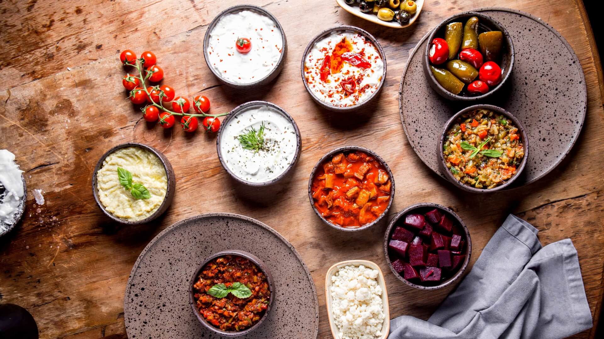 Stap binnen in de betoverende wereld van mezze, waar de smaken van de mediterrane keuken samenkomen in een reeks verfijnde hapjes. Deze verzameling van kleine hapjes, elk met zijn eigen unieke smaak en textuur, neemt je mee op een Mediterrane, culinaire reis vol verrassingen. Van de hartige Borek tot de romige hummus, elk hapje vertelt een verhaal van traditie, passie en ambacht. Deze hapjes zijn niet alleen heerlijk, maar ook een sociale traditie binnen de Mediterrane cultuur.